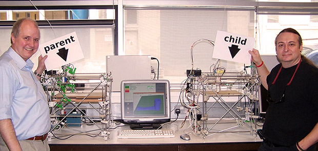 Доктор Адриан Бауэр (Adrian Bowyer) представил в 2004 году идею самовоспроизводящегося 3D принтера с открытым исходным кодом RepRap. В следующие годы, благодаря усилиям его команды в Университете Бата, в частности Вика Оливера (Vik Olliver) и Риса Джонса (Rhys Jones), идея нашла свое воплощение в рабочих прототипах, основанных на FDM технологии. К 2007 году проект начал приносить первые плоды, способствуя продвижению 3D печати в массы.